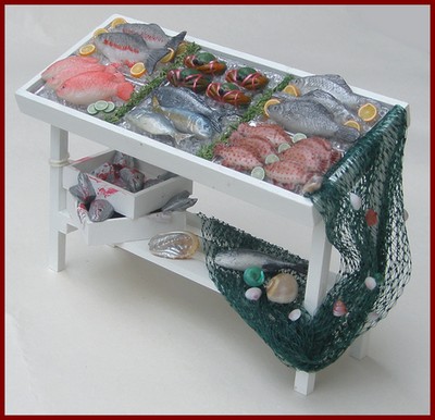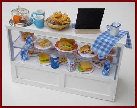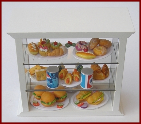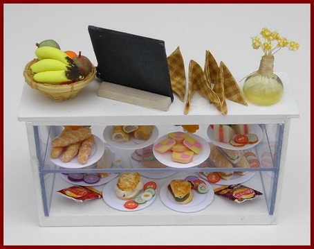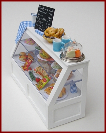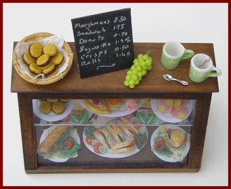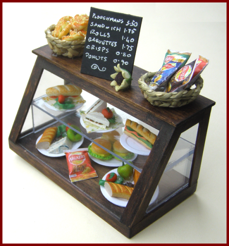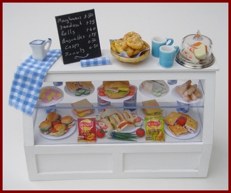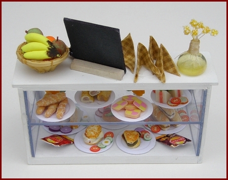 Counters, display units and shelves for all kinds of dolls house shop.